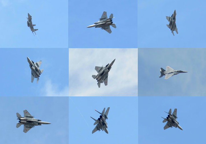 ★ 2〜3枚目の写真は、上空を飛んでいたF15戦闘機を編集してみました。